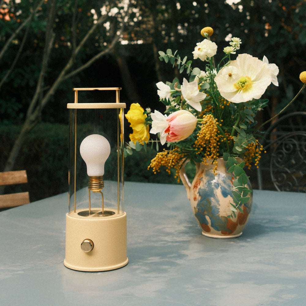 rechargeable mantle portable lamp on dining table in a spanish-style home