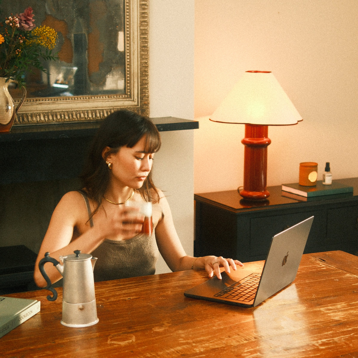 “Heath takes its form from the surrounding architecture of our London studio. Inspired by tall Victorian chimney pots, the lamp celebrates a sense of grounding and quiet familiarity. Crafted in collaboration with skilled ceramists in Portugal, its exaggerated curves and high-gloss glaze gently reflect the light, balancing architectural structure with a relaxed presence. The shade diffuses the glow while introducing a delicate, organic contrast to the ceramic base, referencing wildflowers and clovers found within the built environment.”