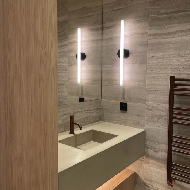 The Kilter Wall Light fixture is available in White, Dark Grey, and Solid Brass enamel finishes and is rated IP44, making it an ideal bath bar or vanity light. The Kilter light source is available in two lengths – 640mm and 500mm – and two colour temperatures – 2200K and 2700K.