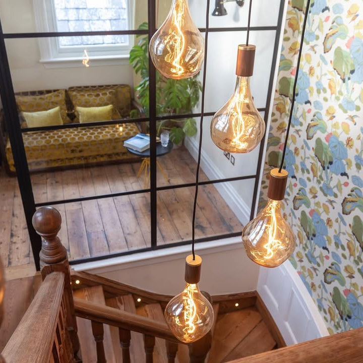 Purchase a fixture in the finish of your choice and mix and match with our E27 bulbs to suit your individual style. Recommended bulbs include Oval II, Sphere V and Voronoi III (pictured).
