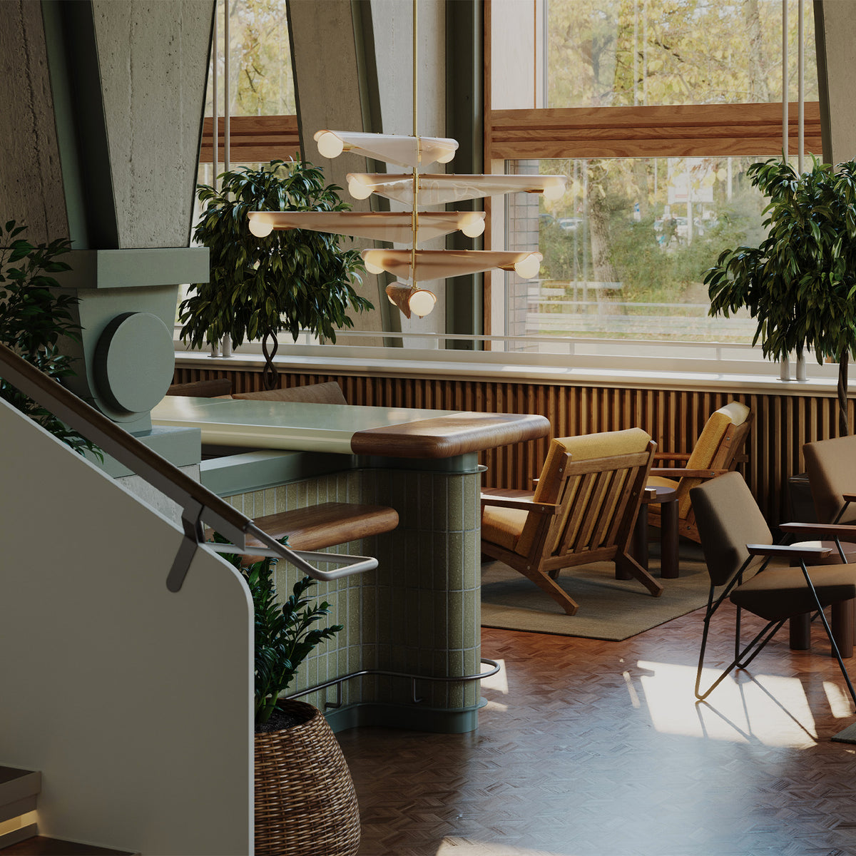 These wings are perfectly poised to gather both natural daylight and the warm evening glow from Tala's bulbs. We selected dawn and dusk colours to echo the ritualistic flights of sycamore seeds in spring and autumn, embodying the rhythm of the seasons."