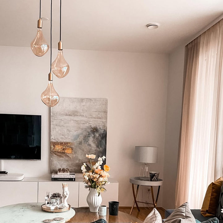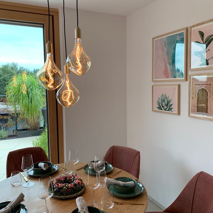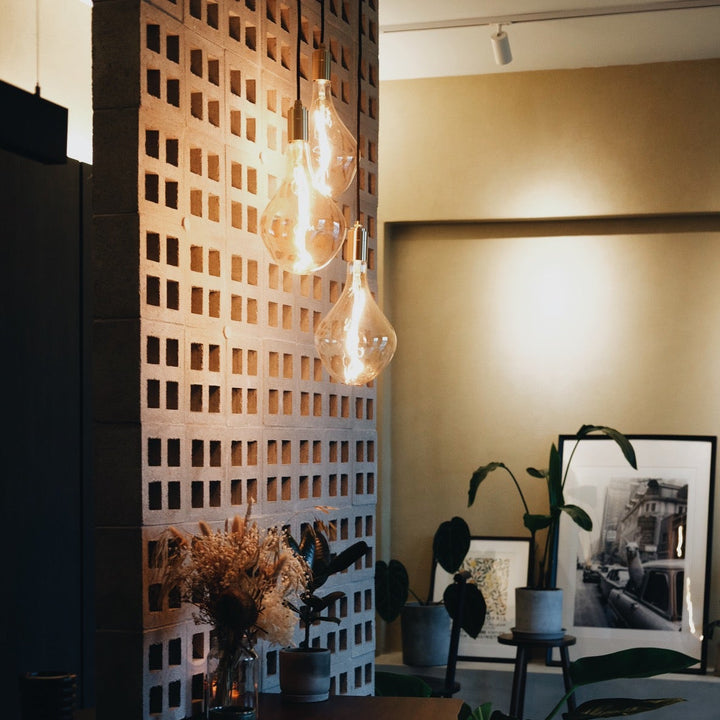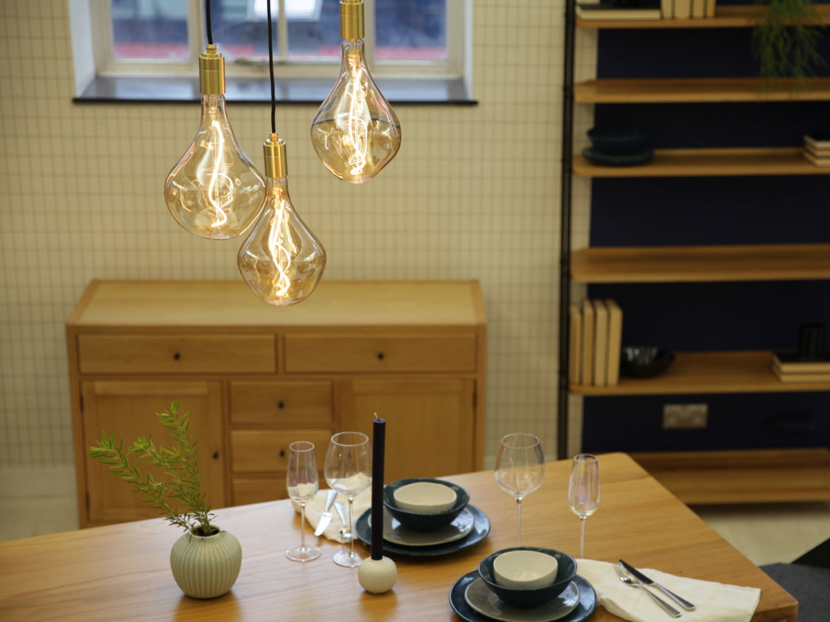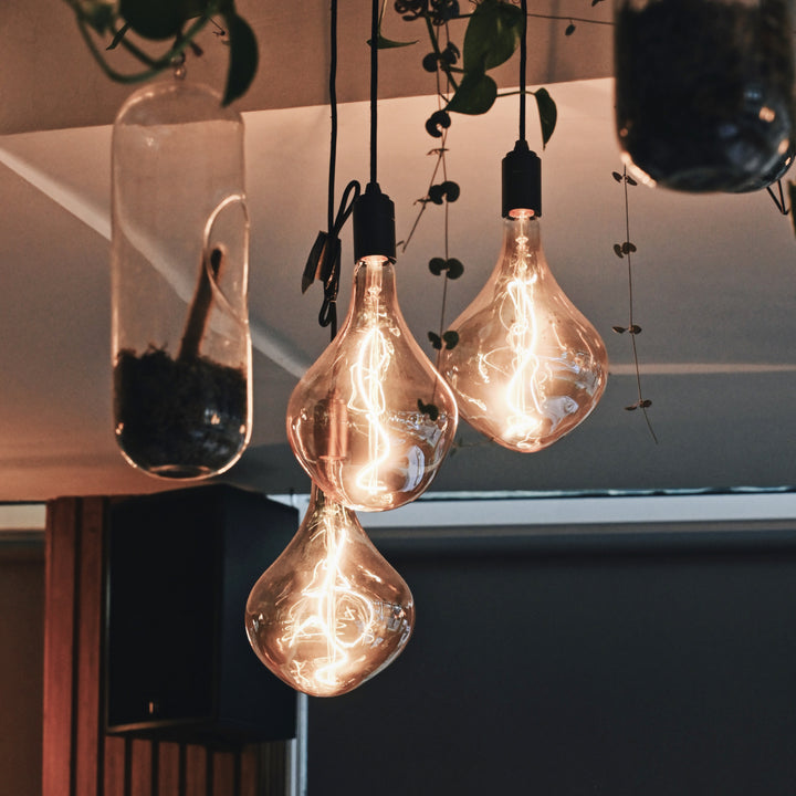 Match a fixture in the finish of your choice with one of our decorative E27 bulbs to suit your individual style. Recommended bulbs include Sphere IV, Voronoi II (pictured), and Voronoi III.