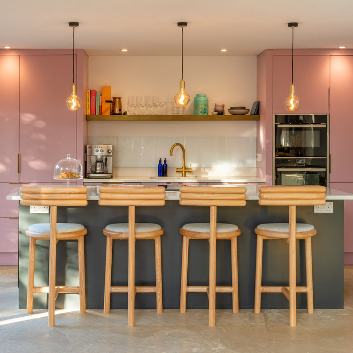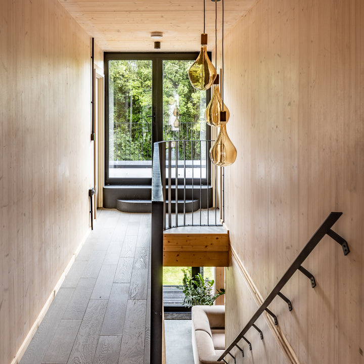 Choose from the Brass, Graphite, Oak or Walnut pendants and arrange in clusters for greater impact.